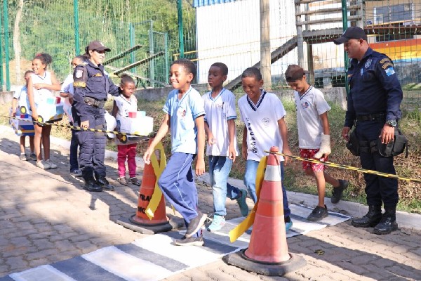 Por outro lado, os alunos da escola em Santana receberam uma simulação de uma via no trânsito e aprenderam sobre a importância das sinalizações, como semáforos e faixas de pedestre.