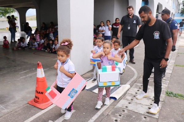 á os alunos da escola Profª Julieta Pereira Sampaio tiveram uma aula prática no centro da cidade. Na ação, a equipe, juntamente com os estudantes, entregaram panfletos educativos para os motoristas que passavam pelo local. O intuito foi trabalhar a segurança no trânsito e conscientizar a população sobre a proposta da campanha. A ação contou com o apoio da Guarda Civil Municipal (GCM).