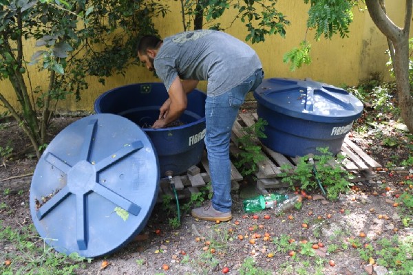 Estou muito animado com a aceitação do projeto nos locais, percebe-se que a equipe se interessa pelo processo, agora todo mundo quer levar para suas plantas um pouco do biofertilizante que é gerado na composteira. Ver alguns assistidos participando da compostagem também é algo muito legal, ensinar uma atividade nova para eles realizarem – relata Gabriel.