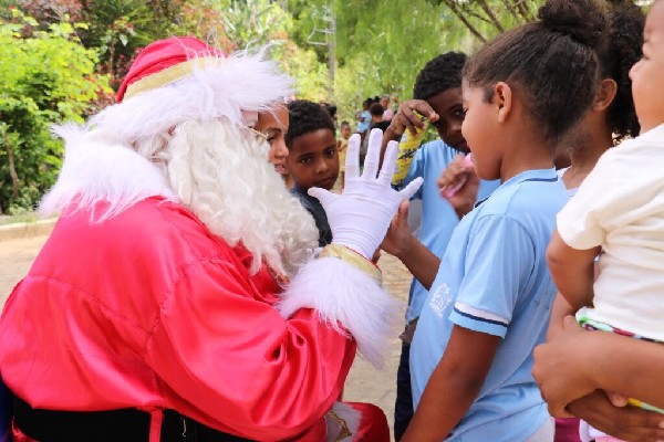 ão, houve entrega de presentes para as crianças, que contou com diversos brinquedos para garantir a diversão dos pequenos. A visita do Noel também rendeu muitas gostosuras com distribuição de pipoca e refrigerante para toda a família.