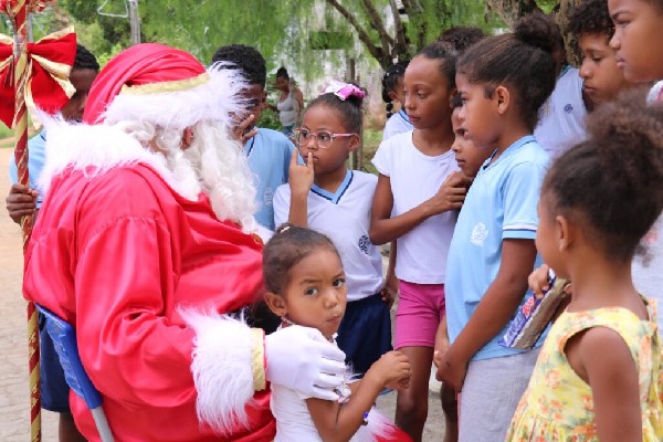 Pelo terceiro ano consecutivo, a comunidade Quilombola de Santana recebeu a visita do Papai Noel. Nesta semana, o bom velhinho foi até a Escola Municipal Quilombola de Santana Irmã Elizabeth Alves e fez a alegria dos alunos e dos moradores da localidade.Na ocasião, houve entrega de presentes para as crianças, que contou com diversos brinquedos para garantir a diversão dos pequenos. A visita do Noel também rendeu muitas gostosuras com distribuição de pipoca e refrigerante para toda a família.A chegada do Noel à comunidade é uma iniciativa da Prefeitura de Quatis, por meio de um conjunto entre as secretarias municipais de Assistência Social e Educação. A ocasião contou com a presença do prefeito Aluísio d’Elias e do secretário de Assistência Social, Hélio Ricardo.