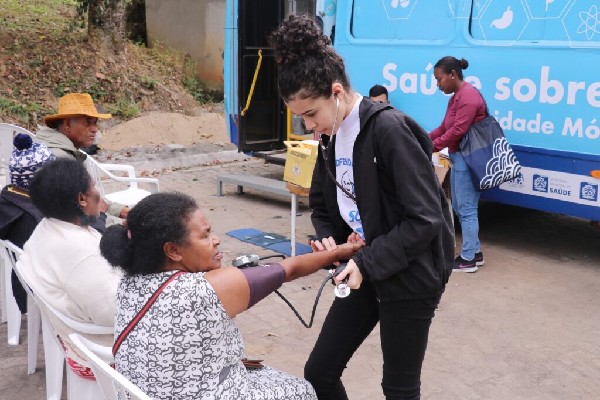 última segunda-feira (10) atendimentos médicos e diversos serviços em saúde com a unidade móvel ‘Saúde sobre Rodas’, que esteve na comunidade. Consultas odontológicas, com clínico-geral, atendimentos com enfermagem e vacinação foram um dos serviços oferecidos pela Secretaria Municipal de Saúde (SMS) no local.