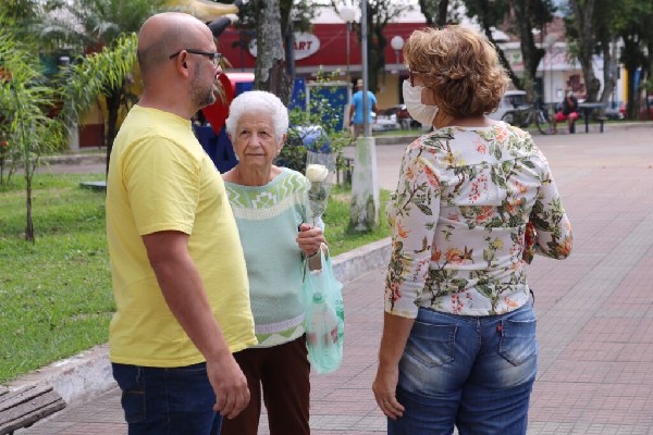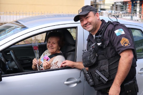 ão, o prefeito Aluísio d’Elias e toda a equipe composta por secretários municipais e agentes da PM realizaram a entrega de rosas, cartões e bombons para as mamães que passavam pelo local, como um ato de homenagem e lembrança a esta data tão especial.