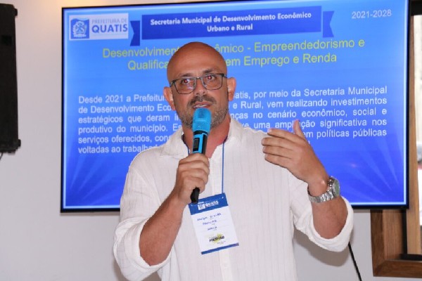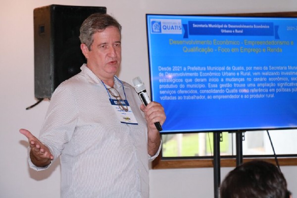 ção foi marcada por palestras e apresentações em variados temas, como geração de empregos, estímulo ao empreendedorismo, além de programas institucionais como a “Escola do Trabalhador 4.0” e o “Fundo de Amparo ao Trabalhador (FAT)”. Marcando presença no evento, o prefeito de Quatis, Aluísio d’Elias, ao lado do secretário de Desenvolvimento Econômico Urbano e Rural, Renato Xavier Corradi, foi um dos palestrantes. Na ocasião, as autoridades fizeram uma apresentação institucional do município de Quatis, destacando as principais economias da cidade, como a economia rural, e os serviços implantados para a empregabilidade e renda.