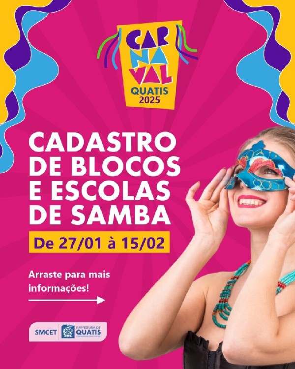 Falta pouco mais de um mês para o Carnaval 2025. E os interessados em desfilar com blocos e escolas de samba nas ruas durante as festas carnavalescas devem se preparar para o período de cadastramento de autorização e regulação, que começa nesta segunda-feira (27), em Quatis. Uma medida da Prefeitura Municipal, o objetivo é dar apoio e autorização para o desfile em vias públicas do município, conforme leis e diretrizes da organização.