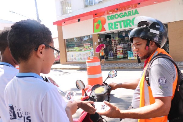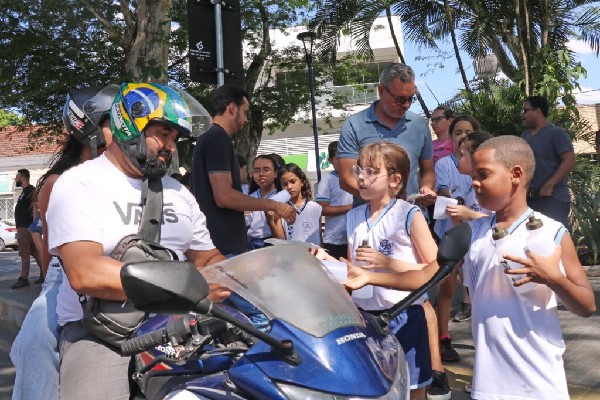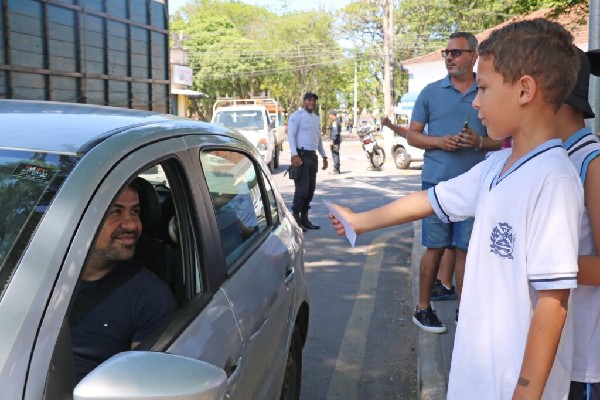 Na última sexta-feira (1º), os alunos do 3º ano do Ensino Fundamental da Escola Profª Julieta Pereira Sampaio, em Quatis, participaram de uma ação de educação no trânsito. A ação foi promovida pela Prefeitura e teve como tema o uso de celular no volante. De acordo com a Secretaria Municipal de Ordem Urbana (SMOU), o objetivo foi conscientizar os menores sobre os perigos e os cuidados com a utilização do aparelho ao dirigir. A atividade aconteceu na Praça dos Expedicionários, no centro da cidade. Na ocasião, os estudantes, acompanhados por agentes da Patrulha Escolar, entregaram panfletos educativos e orientaram motoristas a adotarem medidas de segurança no trânsito.