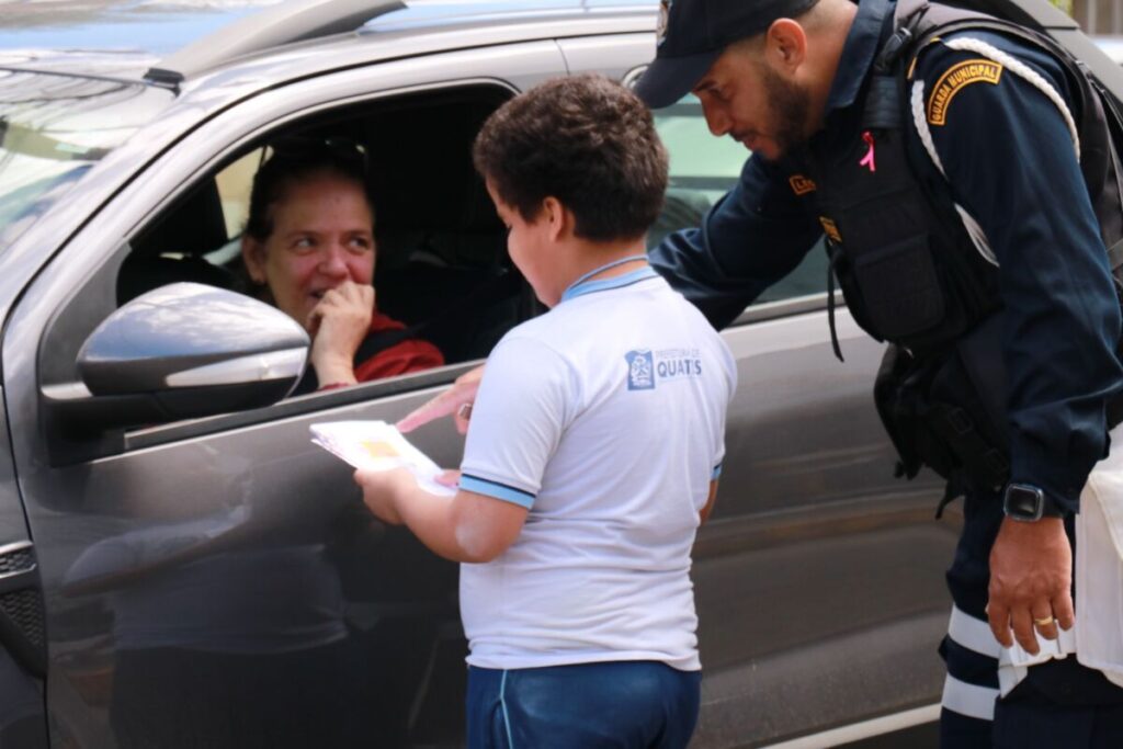 Juntos contra o mosquito! - Nesta semana, equipes da Patrulha Escolar, do Grupamento de Trânsito e da Divisão de Vigilância Sanitária e Ambiental (VISA), da Prefeitura de Quatis, estiveram nas ruas do centro da cidade para uma ação educativa de prevenção à dengue com os alunos das escolas Profª Julieta Pereira Sampaio e Maria Helena Rafael de Elias. Através de uma "blitz educativa", os estudantes, acompanhados de agentes da Guarda Civil Municipal (GCM), entregaram panfletos informativos aos motoristas e pedestres que passavam pelas vias Euclides Alves Guimarães Cotia e Avelino Batista Soares, ambas no centro da cidade. O objetivo foi promover uma interação de conscientização e aprendizado entre as crianças e os adolescentes sobre a importância da prevenção ao mosquito aedes aegypti, principal causador da dengue, além de conscientizar a população sobre a campanha de combate à proliferação do inseto.