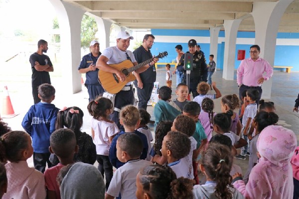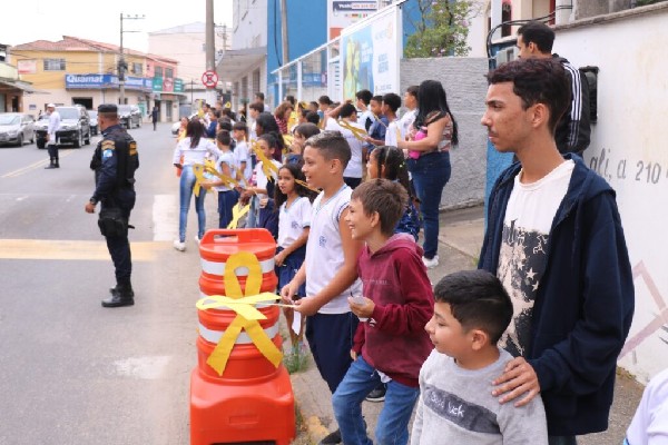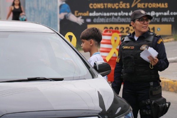 á os alunos da escola Profª Julieta Pereira Sampaio tiveram uma aula prática no centro da cidade. Na ação, a equipe, juntamente com os estudantes, entregaram panfletos educativos para os motoristas que passavam pelo local. O intuito foi trabalhar a segurança no trânsito e conscientizar a população sobre a proposta da campanha. A ação contou com o apoio da Guarda Civil Municipal (GCM).