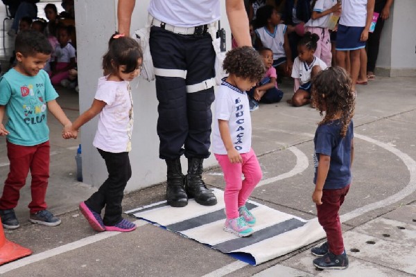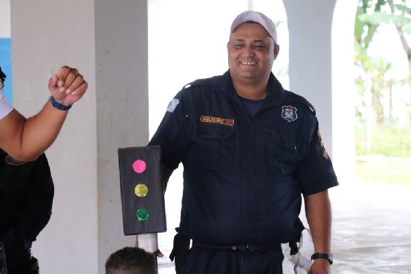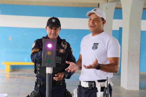 ção de uma via de trânsito. Na ocasião, a equipe deu orientações sobre a sinalização no trânsito, como faixas de pedestres e semáforos, e ainda explicou sobre a importância deles para a segurança de motoristas e pedestres. O secretário de Ordem Urbana, Mateus Ponciano, acompanhou a atividade.
