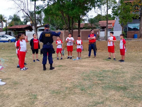 ção proibida e perigosa destes materiais. Na ocasião, os agentes explicaram sobre a importância de utilizar equipamentos legalizados e deram dicas e orientações para garantir proteção ao soltar pipas. Ao final da atividade, os adolescentes ainda participaram de uma dinâmica sobre o tema.