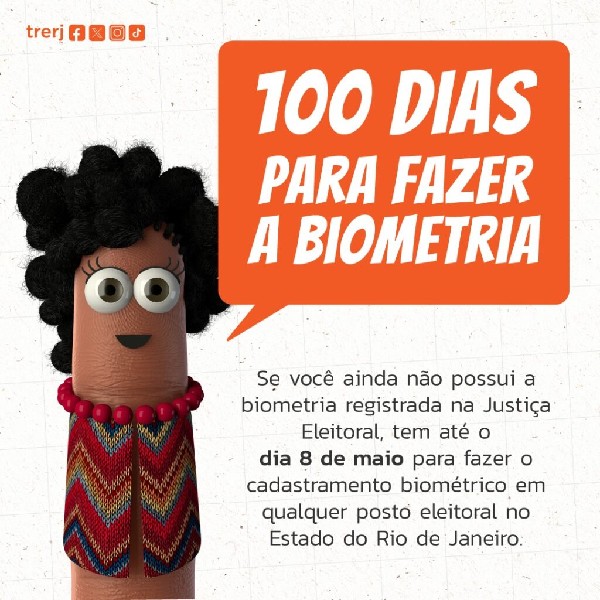 á convocando os eleitores da cidade para realizar o cadastro biométrico da Justiça Eleitoral. A iniciativa faz parte da campanha social #VemPraBiometria do Tribunal Regional Eleitoral do Rio de Janeiro (TRE-RJ), que tem o objetivo de biometrizar 100% do eleitorado de todo o fluminense.