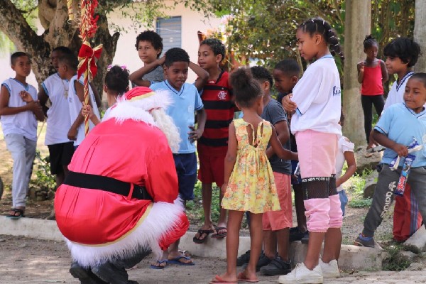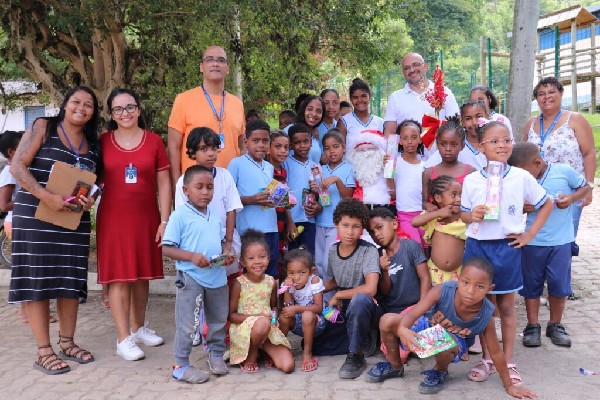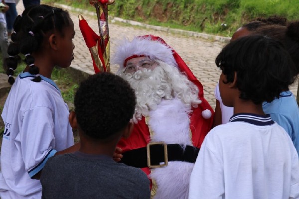 Pelo terceiro ano consecutivo, a comunidade Quilombola de Santana recebeu a visita do Papai Noel. Nesta semana, o bom velhinho foi até a Escola Municipal Quilombola de Santana Irmã Elizabeth Alves e fez a alegria dos alunos e dos moradores da localidade.Na ocasião, houve entrega de presentes para as crianças, que contou com diversos brinquedos para garantir a diversão dos pequenos. A visita do Noel também rendeu muitas gostosuras com distribuição de pipoca e refrigerante para toda a família.A chegada do Noel à comunidade é uma iniciativa da Prefeitura de Quatis, por meio de um conjunto entre as secretarias municipais de Assistência Social e Educação. A ocasião contou com a presença do prefeito Aluísio d’Elias e do secretário de Assistência Social, Hélio Ricardo.