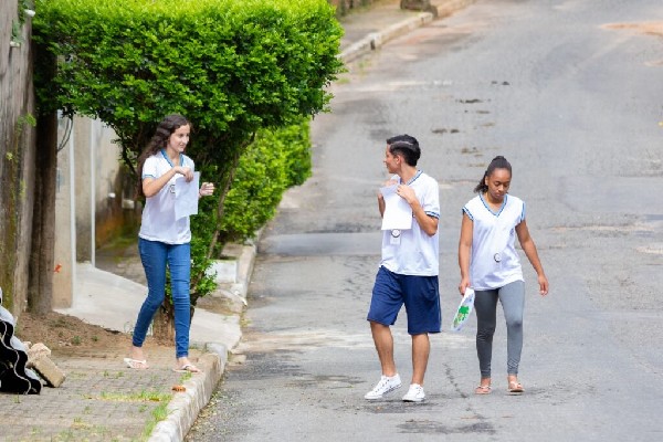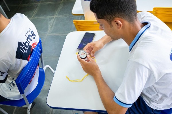 ão, os alunos do 6º ao 9º ano do Ensino Fundamental e do 1º ao 3º ano do Ensino Médio participaram de uma roda de conversa sobre como funciona a bússola e seu uso através do auxílio de mapas. Em seguida, a turma realizou uma atividade prática de orientação, principal ação do projeto. Com o auxílio de um mapa confeccionado por eles, os estudantes tiveram a missão de localizar pontos marcados e encontrar os prismas espalhados pelo local. A ação aconteceu no entorno da escola.