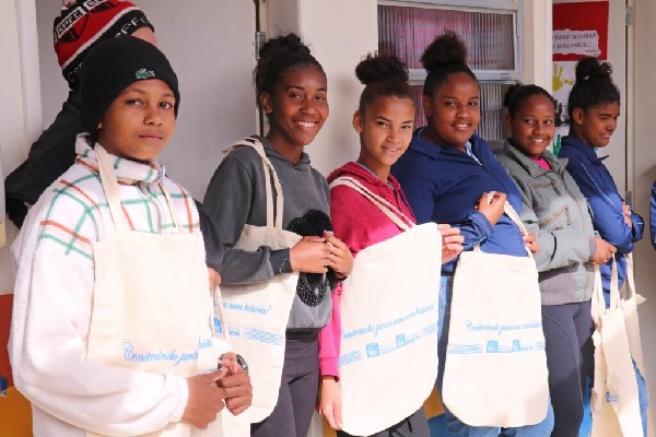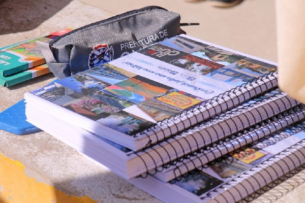 é de qualidade, viu!? Entre todos os itens didáticos, estão caderno, lápis de cor, estojo, garrafinha, tesoura, cola branca e colorida, tinta guache e muito mais.