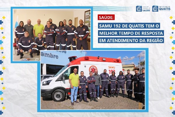 ípio de Quatis possui o melhor tempo de resposta no Serviço de Atendimento Móvel de Urgência (SAMU-192) de toda a região do Médio Paraíba, segundo apuração do Consórcio Intermunicipal de Saúde do Médio Paraíba RJ (CISMEPA). No último mês, a pesquisa apontou uma média das equipes de 12 cidades da região e Quatis garantiu o primeiro lugar na lista.