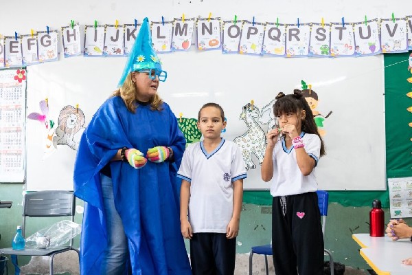 A convite da equipe, a professora e contadora de história, Clara Inês Xavier, apresentou a fábula "A Fada D'Água" para os alunos do 4º ano do Ensino Fundamental. A história aborda temas de conscientização sobre o consumo de água, descarte de resíduos, desmatamento e a importância da preservação do meio ambiente. A ocasião também proporcionou aos estudantes um bate-papo divertido sobre o tema.