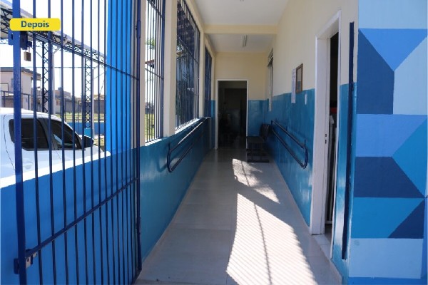 ‘Antes x Depois’ do ESF II, como era e como ficou após a sua revitalização. O local recebeu novas instalações de estrutura elétrica, troca de pisos, acessibilidade, salas e ambientes equipados e climatizados, além de uma nova pintura que deixou o lugar mais lindo e confortável para atender os usuários.