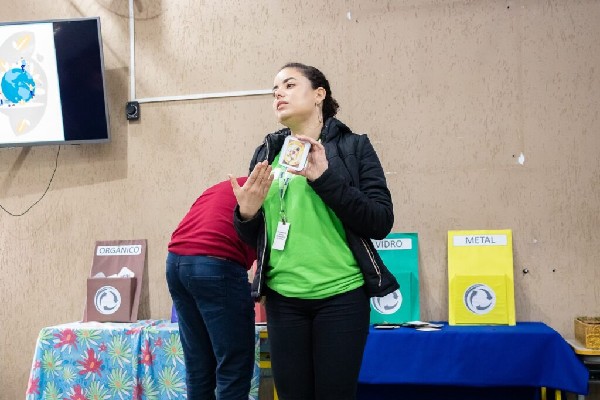 Na ocasião, foram abordados temas como biodiversidade, assoreamento de corpo hídrico e coleta seletiva, e a turma participou, ainda, de um bate-papo sobre os temas ligados ao meio ambiente. Quem esteve presente participando da ação foi a secretária de Sustentabilidade e Ambiente, Caroline Teixeira Lopes, e o prefeito Aluísio d'Elias.