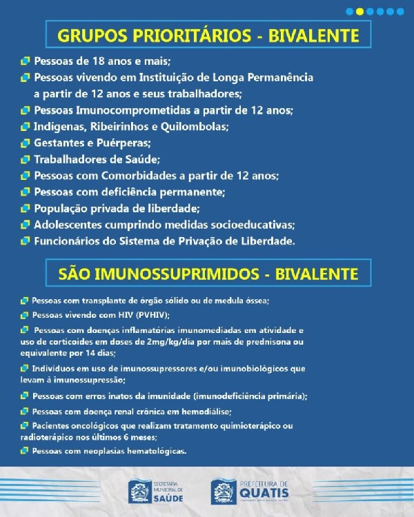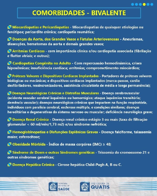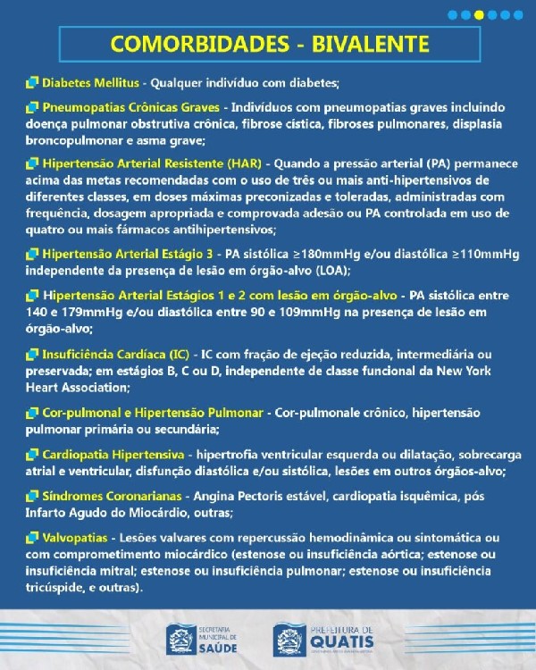 ção Bivalente da Covid-19, o munícipe deve estar com pelo menos 4 meses de intervalo desde que recebeu a última dose.