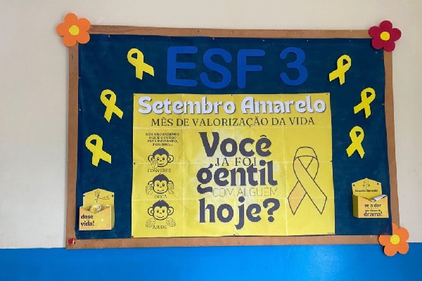‘Setembro Amarelo’ também segue acontecendo nas unidades de saúde de Quatis. Além da popularidade da decoração na cor amarela, a população ainda pode participar de ações e palestras do governo municipal durante consulta e visitas nas unidades ESF’s. O intuito é promover conhecimento sobre à campanha e reforçar o compromisso com a prevenção ao suicídio e da atenção à saúde emocional.