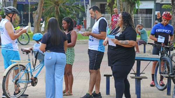 ém realizou uma ação de conscientização sobre pedalar de forma segura. O intuito foi alertar os ciclistas e conscientizar sobre a importância do uso de equipamentos adequados para o ciclismo e outras orientações.