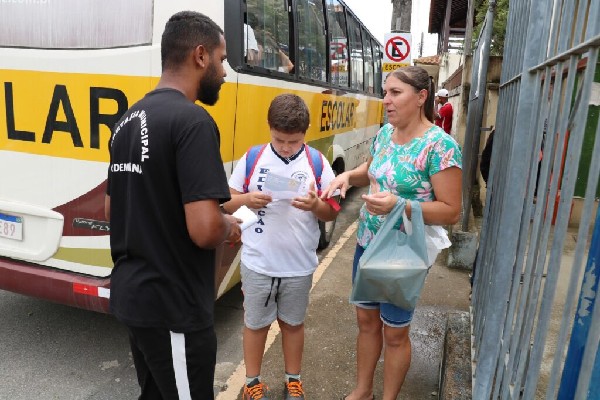 ções, os agentes informaram sobre embarque e desembarque de alunos, sobre o local designado para retorno, e ressaltaram ainda a respeito da sinalização indicada no local sobre a proibição de estacionar no lado direito da via nos horários de entrada e saída dos alunos.