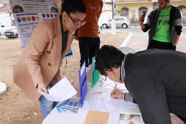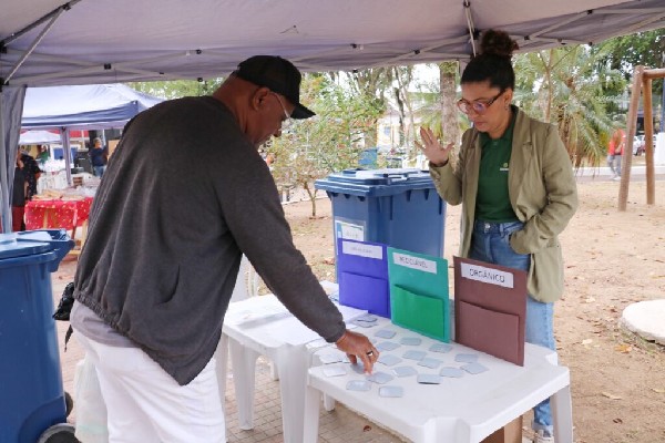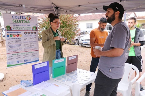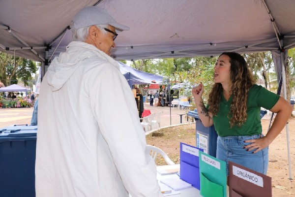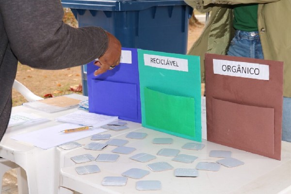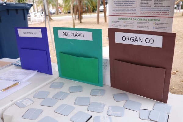 ção, a equipe da secretaria conversou com o público e disponibilizou panfletos informativos sobre o tema e outros serviços ligados à pasta, que envolvem campanhas sustentáveis. Na ocasião, também foram instaladas lixeiras para o descarte de materiais recicláveis. Quem passava pelo local, além de poder contribuir com o descarte correto do lixo, ainda pôde participar de uma dinâmica interativa que envolvia a separação dos resíduos.