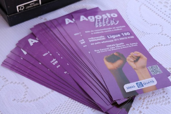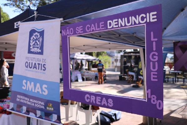 ência Social (SMAS), da Prefeitura de Quatis, promoveu uma ação da campanha ‘Agosto Lilás’, que aconteceu no último sábado (2), na Praça Dr. Teixeira Brandão, durante a feira de artesanatos, a FeirArte. A atividade contou com um stand com diversos cartazes e folhetos sobre o mês que celebra a conscientização ao combate à violência contra a mulher. Na ocasião, a equipe da secretaria, através do Centro de Referência Especializado de Assistência Social (CREAS), realizou uma panfletagem com o intuito de abordar o público e destacar o tema da campanha.