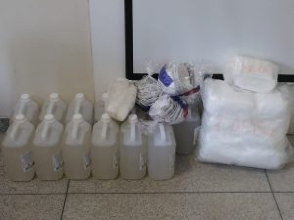óculos, macacões, máscaras e luvas de proteção de várias especificações técnicas, capotes, toucas e produtos de limpeza como hipoclorito e álcool em gel e líquido.