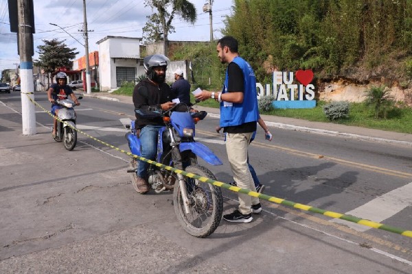 A campanha ‘Maio Amarelo’, mês de conscientização sobre a segurança e redução de acidentes no trânsito, já começou em Quatis. Na última terça-feira (13), a equipe da Secretaria Municipal de Ordem Urbana (SMOU), da Prefeitura, realizou a primeira atividade de conscientização da campanha, que foi voltada aos motociclistas.A ação aconteceu na Praça dos Expedicionários, no centro da cidade, e na linha férrea, no bairro São Benedito. A iniciativa contou com entrega de panfletos, dicas e diálogos de conscientização sobre segurança e acidentes no trânsito. O objetivo foi conscientizar condutores de veículos, com foco nos motoqueiros, sobre a proposta do ‘Maio Amarelo’, como forma de chamar atenção para o tema da campanha.Na ocasião, a equipe abordou diversos tópicos, como limite de velocidade, uso obrigatório do capacete, manobras perigosas em vias públicas, adulteração de escapamento, além do ato de pilotar sem a Carteira Nacional de Habilitação (CNH).