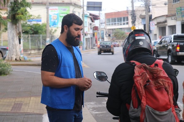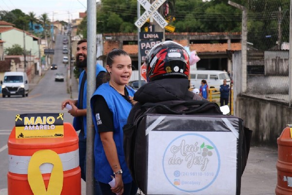 ção aconteceu na Praça dos Expedicionários, no centro da cidade, e na linha férrea, no bairro São Benedito. A iniciativa contou com entrega de panfletos, dicas e diálogos de conscientização sobre segurança e acidentes no trânsito. O objetivo foi conscientizar condutores de veículos, com foco nos motoqueiros, sobre a proposta do ‘Maio Amarelo’, como forma de chamar atenção para o tema da campanha.