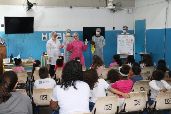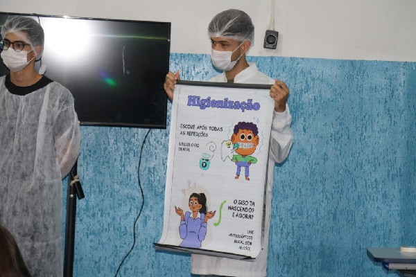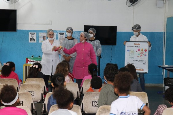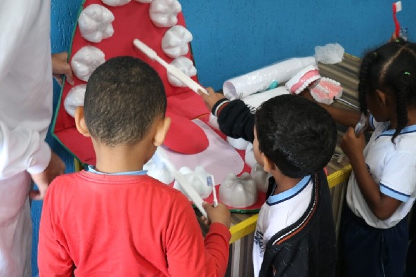 úde (SMS), a ação contou com orientações de escovação e sobre saúde bucal, levando informação e cuidado de forma prática, acessível e lúdica. O objetivo foi reforçar e qualificar o cuidado odontológico em ambiente escolar, alinhando promoção e recuperação da Saúde Bucal e Prevenção de Doenças.
