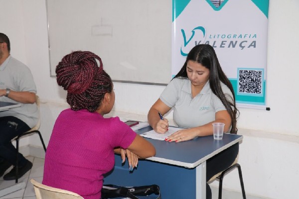 A primeira etapa do processo seletivo foi direcionado ao cadastramento, análise de currículos e entrevista presencial com a equipe do Departamento de Recursos Humanos da Litografia Valença. Foram 10 vagas para Auxiliar de Produção, para pessoas de ambos os sexos, e 10 vagas para Ajudante de Produção, destinadas apenas para pessoas do gênero masculino. Os cargos também foram destinados à PCD's, visando a inclusão social e ampliação de oferta de trabalho para todos os públicos.