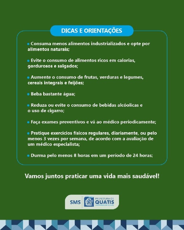 Dessa forma, a Prefeitura de Quatis separou algumas dicas e orientações de como ter uma alimentação saudável e uma dieta equilibrada para você adotar na sua rotina e melhorar a sua saúde: