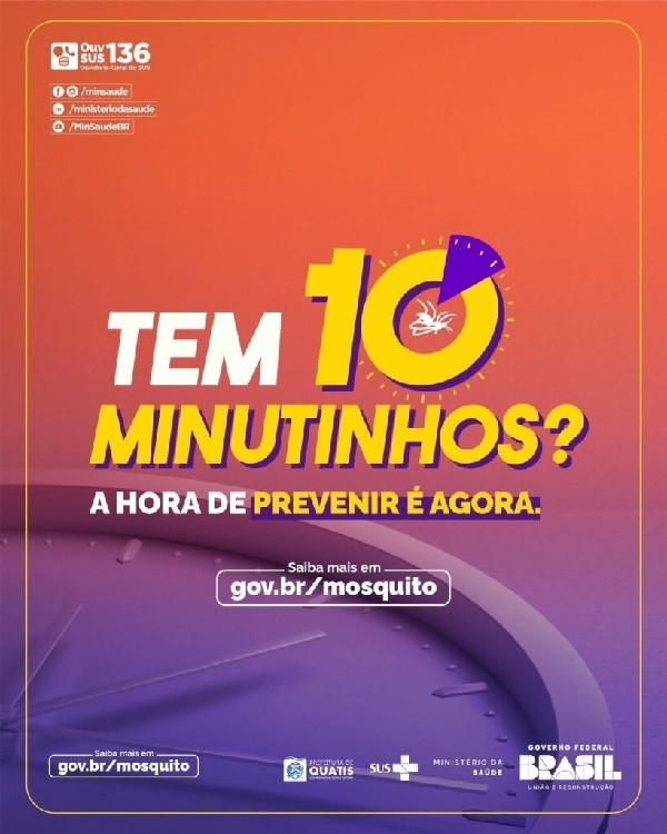Apenas 10 minutinhos por semana fazem total diferença para eliminar os focos do mosquito. A hora de prevenir é agora.