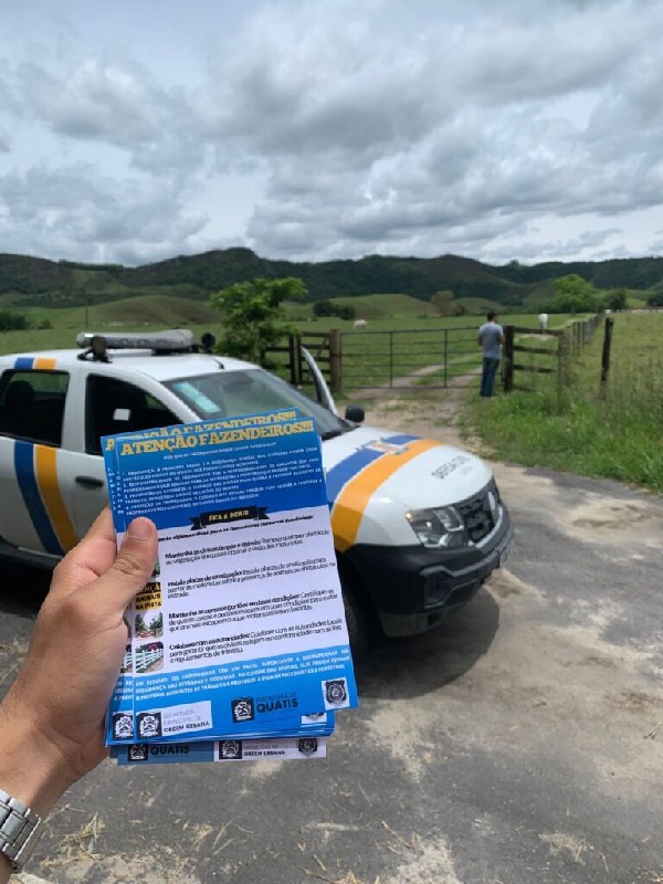 ção de Trânsito (DEMUTRAN) e a Defesa Civil, da Secretaria Municipal de Ordem Urbana (SMOU) de Quatis, realizaram, recentemente, uma ação de conscientização aos proprietários rurais sobre segurança no trânsito.