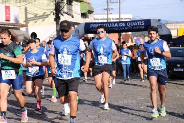 ício por volta das 7h, na Praça Dr. Teixeira Brandão, no centro da cidade. Minutos antes, o local foi palco para uma pequena cerimônia religiosa ministrada pelo Padre Clésio, da Paróquia Nossa Senhora do Rosário, que cumpriu a tradição do evento em realizar uma breve benção aos atletas. A ocasião contou ainda com a presença do prefeito de Quatis, Aluísio d’Elias. Ao final da corrida, houve premiação com entrega de medalhas para os atletas inscritos, além de troféus nas categorias por idades e geral masculino e feminino.