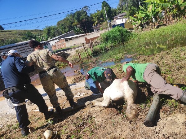 ção de salvamento foi realizada com um cavalo na última quarta-feira (12), em Quatis. O animal havia caído em um buraco próximo à represa do bairro Lava-Pés. Na terça-feira (11), agentes do Grupamento Ambiental, em conjunto com a equipe da Divisão de Vigilância Sanitária e Ambiental (VISA), foram acionados até o local, após relatos de um cavalo que aparentava estar “muito magro”. Ao chegarem na comunidade, o animal não foi encontrado.