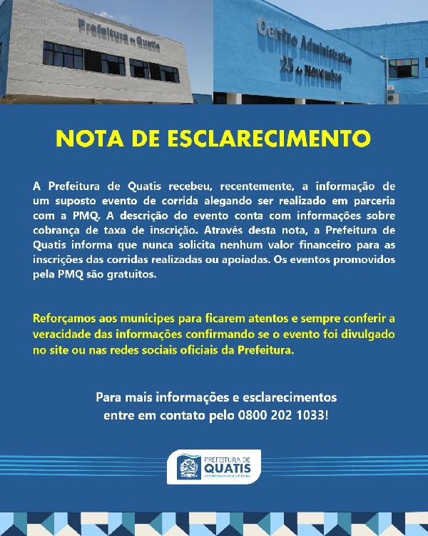 CÂMARA MUNICIPAL DE QUATIS CONTROLADORIA GERAL DO MUNICÍPIO GABINETE DO PREFEITO INSTITUTO DE PREVIDÊNCIA DOS SERVIDORES PÚBLICOS DO MUNICIPIO QUATIS PREFEITURA MUNICIPAL DE QUATIS PREFEITURA MUNICIPAL DE QUATIS PROCURADORIA GERAL DO MUNICIPIO SECRETARA DE DESENVOLVIMENTO RURAL SECRETARIA DE ADMINISTRAÇÃO SECRETARIA DE ASSISTÊNCIA SOCIAL E DIREITOS HUMANOS SECRETARIA DE CULTURA E TURISMO SECRETARIA DE EDUCAÇÃO SECRETARIA DE ESPORTE E LAZER SECRETARIA DE FAZENDA SECRETARIA DE FINANÇAS SECRETARIA DE GOVERNO SECRETARIA DE MEIO AMBIENTE SECRETARIA DE OBRAS, URBANISMO E SERVIÇOS PÚBLICOS SECRETARIA DE ORDEM URBANA SECRETARIA DE SAÚDE SECRETARIA DE TRABALHO E RENDA SECRETARIA DE TRANSPORTE SECRETARIA MUNICIPAL DE ADMINISTRAÇÃO SECRETARIA MUNICIPAL DE ASSISTÊNCIA SOCIAL SECRETARIA MUNICIPAL DE CULTURA E TURISMO SECRETARIA MUNICIPAL DE CULTURA, ESPORTE E TURISMO SECRETARIA MUNICIPAL DE DESENVOLVIMENTO ECONÔMICO URBANO E RURAL SECRETARIA MUNICIPAL DE EDUCAÇÃO SECRETARIA MUNICIPAL DE ESPORTE E LAZER SECRETARIA MUNICIPAL DE FINANÇAS SECRETARIA MUNICIPAL DE GOVERNO SECRETARIA MUNICIPAL DE INFRAESTRUTURA SECRETARIA MUNICIPAL DE LICITAÇÕES, COMPRAS E CONTRATOS SECRETARIA MUNICIPAL DE ORDEM URBANA SECRETARIA MUNICIPAL DE SAÚDE SECRETARIA MUNICIPAL DE SUSTENTABILIDADE E AMBIENTE